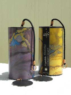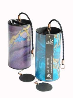 Each chime is handcrafted by highly skilled craftsmen, who create these magical musical instruments ,designed with marbeled glowing-colours and their unique tuning.