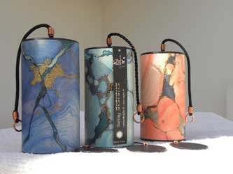A specific marble-technique of “oil-paint on water” was developed to give to the chime its unique design, in a range of 21 glowing colours.